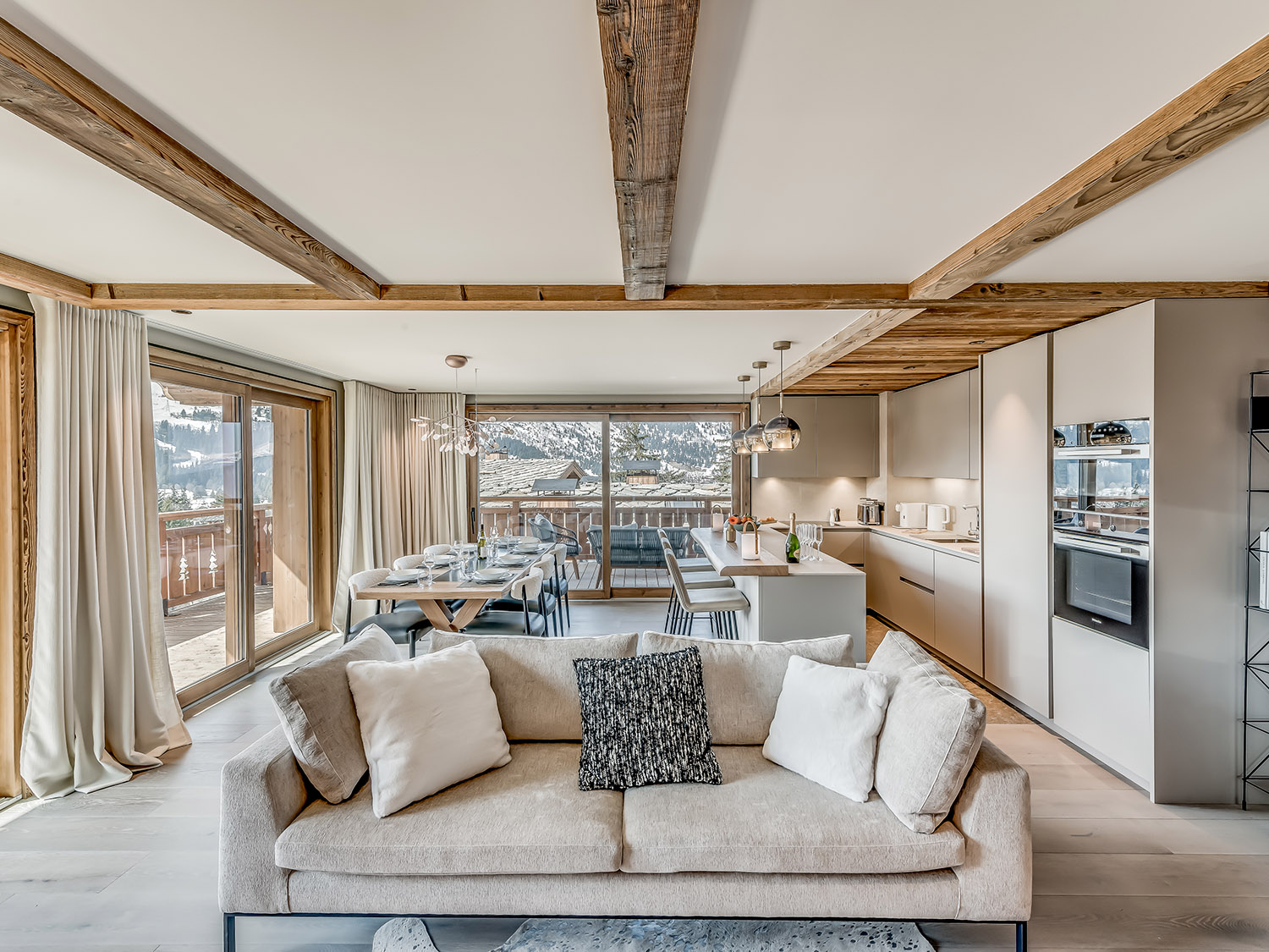 Inspired by the Cantonese words for Hello (Jo San), this authentically Alpine luxury apartment is welcoming by both its name and the warm and inviting interior design.