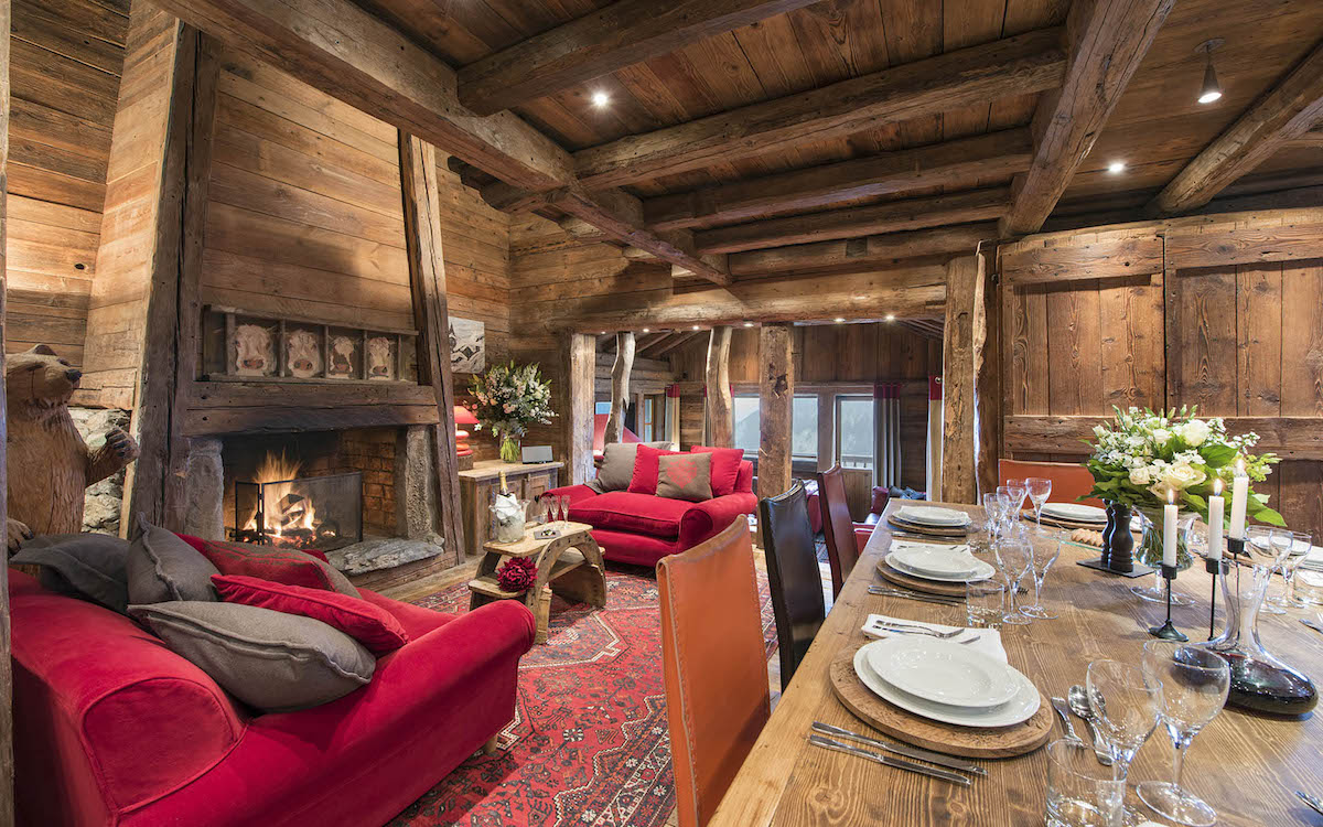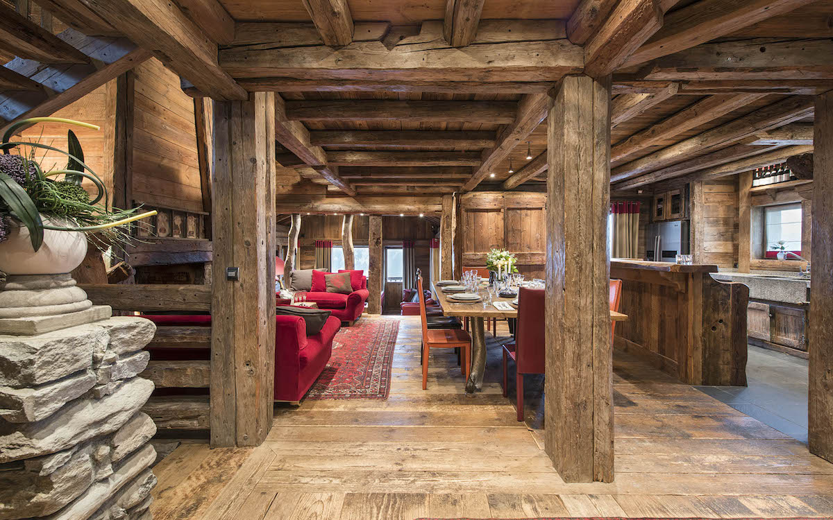 Boasting a traditional alpine exterior the chalets reclaimed timber and natural stone blend perfectly with the surrounding snow covered pine trees. This quintessential alpine charm continues once you step through the chalet front door where the ancient timbers, open fireplaces and thoughtful soft furnishings create a cosy, relaxing atmosphere.
