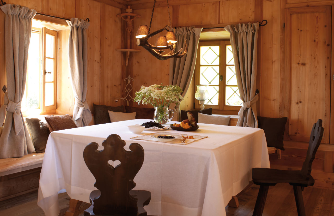 The moment you step inside, you’ll feel the charm of the vaulted ceiling, the quality of the fabrics, the elegance of the design and the loving attention given to every detail. But perhaps the highlight of any stay at San Lorenzo Mountain Lodge is the genuine passion for hospitality of its owners Giorgia and Stefano, and the authentic mountain experiences offered to guests. Go hunting for wild mushrooms and berries with your hosts, see the cows being milked, chop wood the old fashioned way and learn to cook some of Giorgia’s acclaimed recipes.
