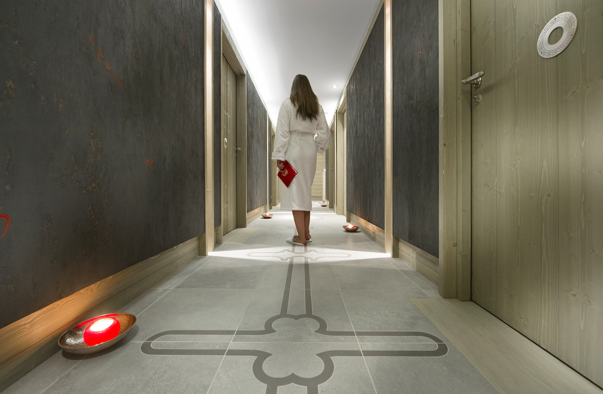 Walking through from one of the chalets to the central hub of the spa, lounge-bar and restaurants it’s hard to tell that the accommodation areas are separate and connected by underground walkways. The rooms are on their own floor in each chalet which gives it a real feeling of privacy.