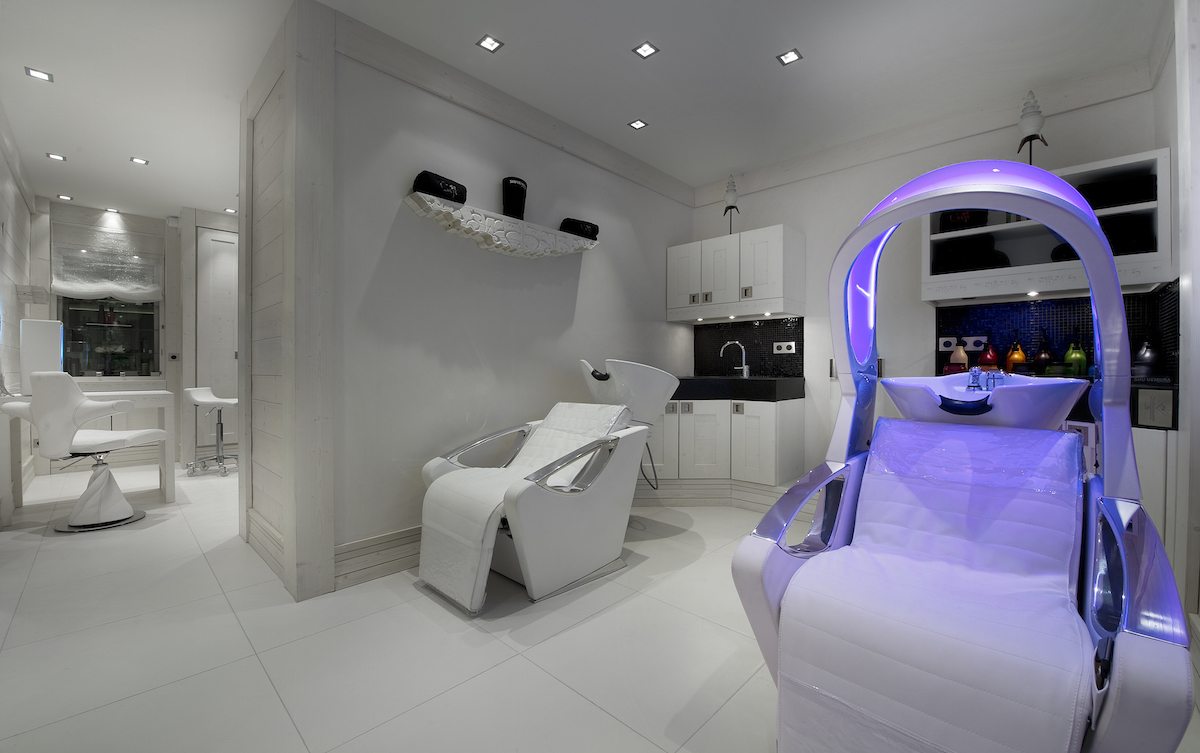The spa features a swimming pool and jacuzzi, outside hot tub, steam and sauna rooms and relaxing couches and beds dotted around the pool. For fitness buffs there is a fully equipped, state of the art gym complete with a large Himalyan salt wall (for energy). There is also a salon and barbers available as well as treatment rooms where guests can enjoy a range of massages or beauty treatments using La Prairie products.